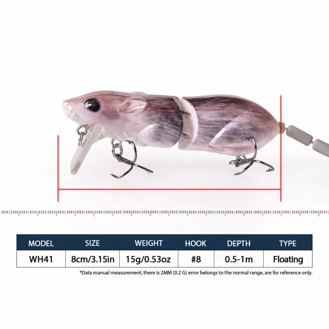 What makes this mouse lure special is its combination of realism, durability, and enticing action. Its floating design brings fish to the surface, creating thrilling visual strikes you won’t forget. Whether targeting bass, pike, or saltwater predators, this lure performs exceptionally across a wide range of fishing conditions. It’s best used during feeding windows at dawn or dusk, or anytime fish are chasing surface prey.