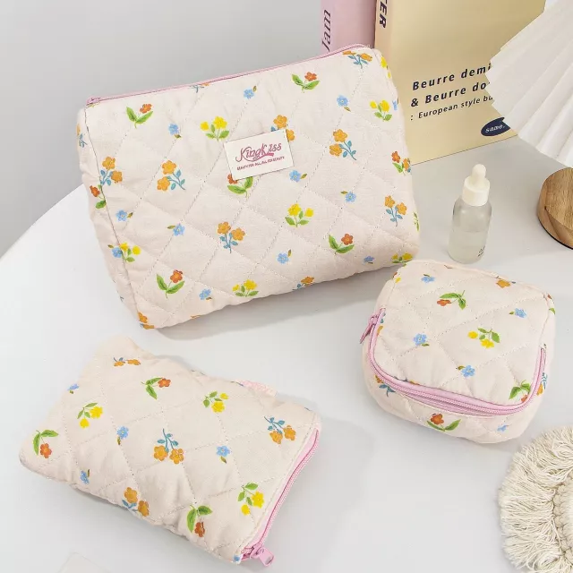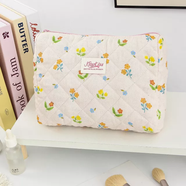 Use this makeup bag for your daily commute, weekends away, vacation adventures, or simply to tidy your vanity. It’s ideal for holding cosmetics, toiletries, brushes, and small beauty tools with ease. Whether you’re heading to the office, packing for a getaway, or giving someone a thoughtful gift, this floral quilted makeup bag delivers both charm and convenience.