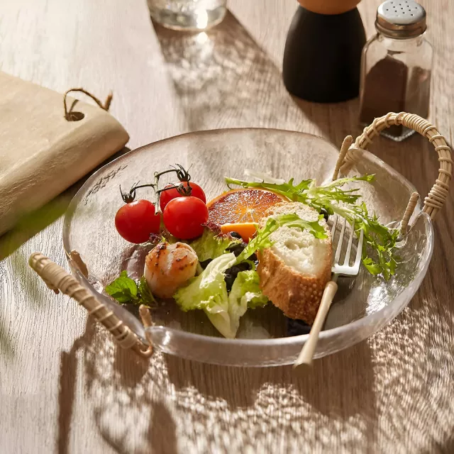 Unique pieces have the power to brighten even the most ordinary days. This Rattan & Glass Plate isn’t just for serving—it’s for savoring the beauty of life’s simple pleasures. Use it to display fresh fruit in your living room, serve desserts at a gathering, or hold snacks during movie night. No matter how you use it, this elegant dish will always catch the eye and spark conversation.