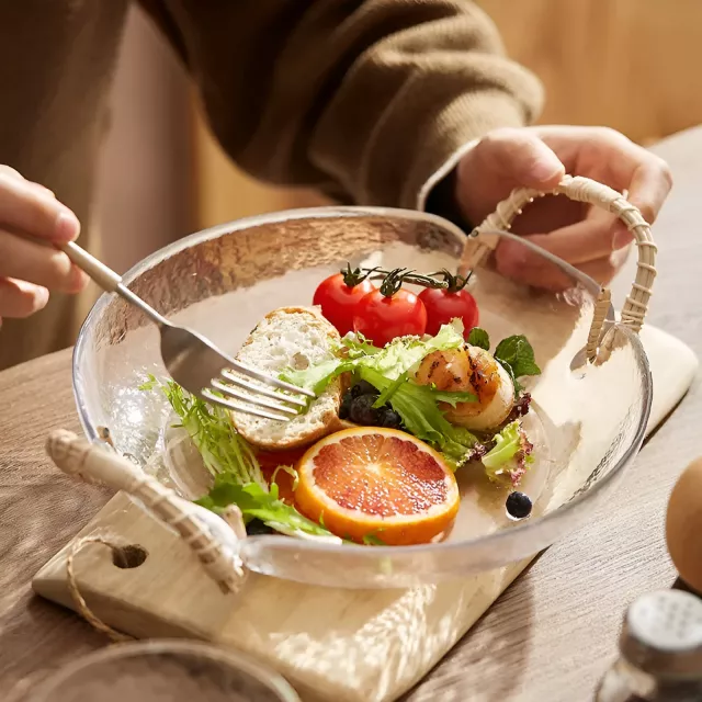 Bring charm and sophistication to your dining experience with this Handmade Rattan & Glass Fruit Plate. Perfectly blending traditional craftsmanship with modern design, this plate captures the essence of Japanese retro style. The transparent glass surface highlights the natural beauty of your fruits, snacks, or salads, while the delicately handwoven rattan base adds warmth and texture to your home décor. It’s more than a serving plate—it’s a statement piece that elevates your everyday moments.