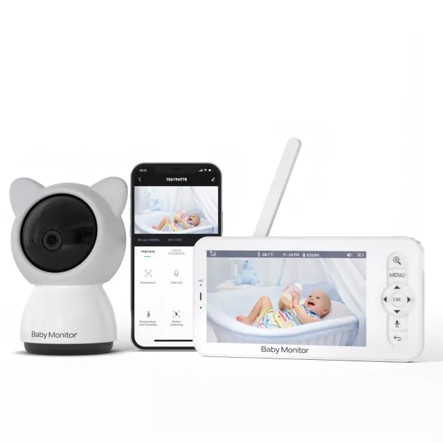 Keep an eye on your little one anytime, anywhere with this HD Smart WiFi Baby Monitor. Designed for modern parents, it combines a crystal-clear 5-inch LCD screen with easy mobile app control, giving you two convenient ways to watch over your baby. With smooth PTZ control, you can tilt up and down or rotate a full 355° to see the entire nursery effortlessly.