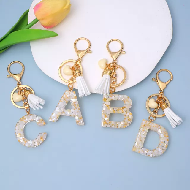 Add a touch of sweetness and personality to your daily essentials with this Heart Initial Letter Keychain. Designed with a glossy resin alphabet charm, a soft white tassel, and elegant gold-tone hardware, it’s the perfect accessory to brighten your handbag, backpack, or car keys. Whether you’re heading to work, running errands, or going out with friends, this stylish keyring adds a delightful sparkle to your day.