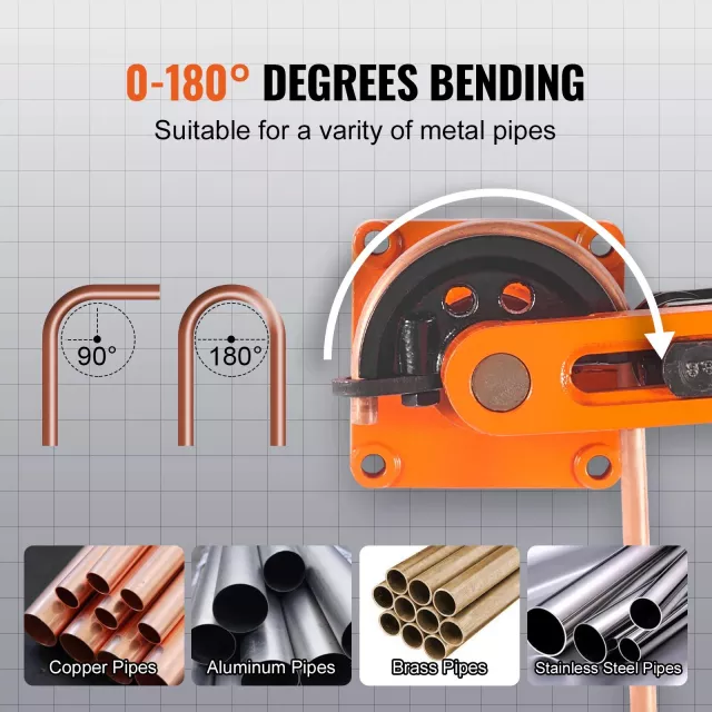 Unlock smooth, accurate pipe bending with this heavy-duty manual tube bender designed for reliable performance and effortless control. Built for installing, repairing, or crafting metal tubing, this versatile tool delivers clean bends from 0° to 180° with impressive precision. Whether you’re working on home upgrades or professional systems, it gives you the power to bend pipes exactly the way you need—without kinks, cracks, or wasted materials.