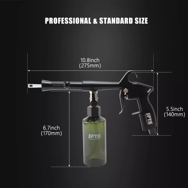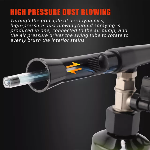 This cleaning gun uses advanced air rotation technology. When connected to an air pump, it creates a strong, rotating airflow that lifts dirt and evenly spreads cleaning liquid across fabric, leather, and plastic surfaces. The result? A deep, even clean without soaking your interior.