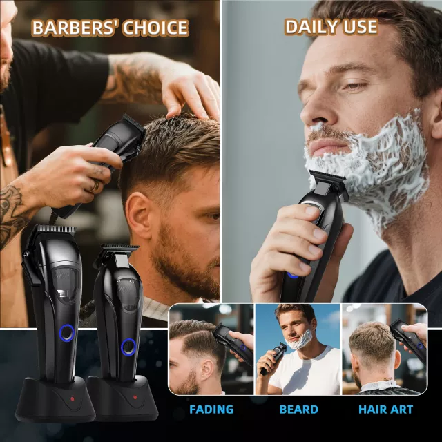 This grooming tool is best used for daily beard trimming, weekly haircuts, professional barber work, and detailed finishing touches. Whether you’re maintaining a fade, shaping a mustache, or trimming down hair to a clean close length of 0.02–0.04 in, this set gives you flawless control and reliability.