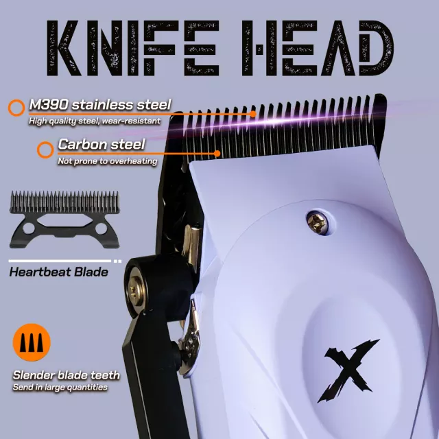 Experience smooth, professional-quality grooming at home or in the barbershop with this high-performance cordless hair clipper. Designed for efficiency and ease of use, it combines a powerful 8800RPM motor with a sharp, heat-resistant DLC heart steel blade to deliver clean, precise cuts every time. Whether you need crisp fades, detailed edging, or fast full-length trimming, this clipper provides consistent performance with minimal noise and vibration.