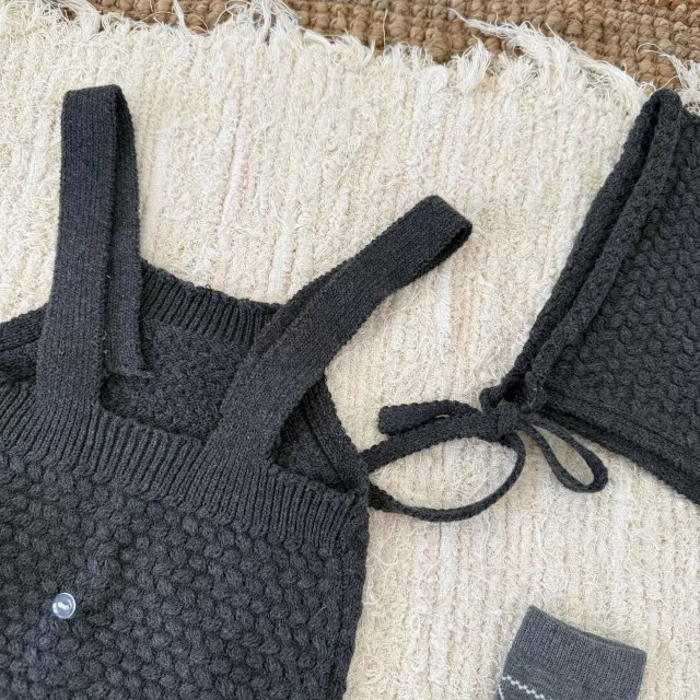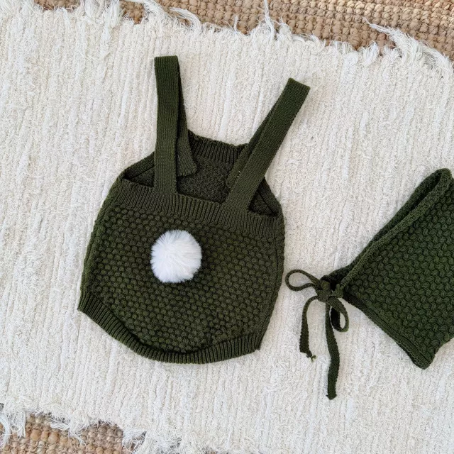 Dress your baby boy in comfort and charm with this sweet knit romper and matching hat set. Designed in a modern Japan-Korean inspired style, this outfit blends soft textures, clean lines, and irresistible pom-pom details that make your little one stand out effortlessly. Its cozy knit weave provides gentle warmth during cool days, while the sleeveless suspender-style silhouette keeps your baby comfortable and free to move. Whether for daily wear, photos, family outings, or special moments, this romper is the perfect blend of practicality and cuteness.