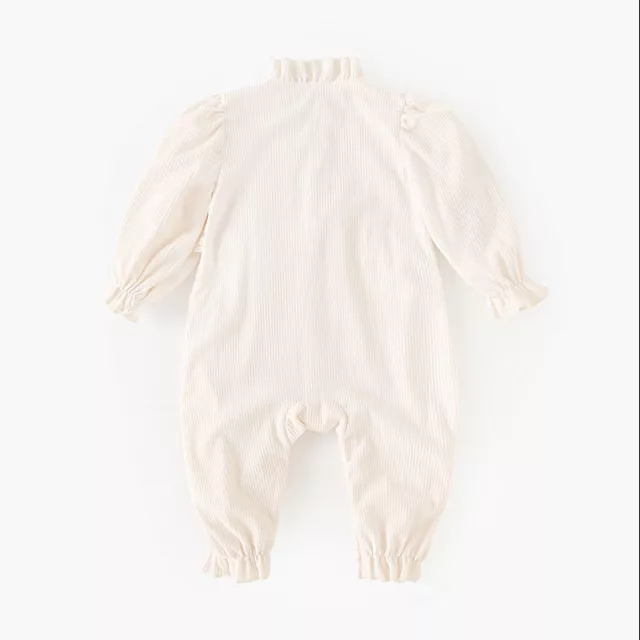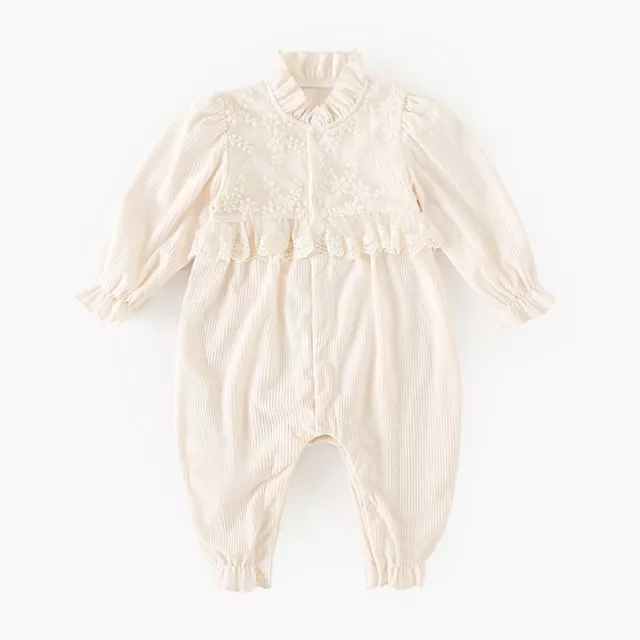 This charming baby romper is designed to keep little ones cozy, stylish, and comfortable all season long. Made from soft vintage-style corduroy, it offers a gentle warm touch that’s perfect for cooler days. The delicate lace floral details and ruffled accents bring a sweet, classic look that makes this one-piece stand out. Whether your baby is playing at home, visiting family, or enjoying a day out, this romper adds a touch of elegance to any moment.