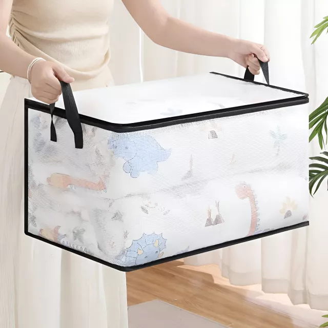 This storage bag combines durability, visibility, and portability in one smart design. The waterproof PVC material helps protect your items from dust, moisture, and daily wear. The transparent window allows you to instantly identify what’s inside without opening the bag, saving you time and effort. With sturdy handles, you can move your stored items easily from room to room. Measuring generously in size, it fits large blankets, bulky winter coats, pillows, towels, and more—making it ideal for seasonal storage, home organization, or travel.