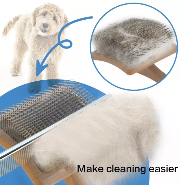 Say goodbye to painful tangles and hello to a smooth, fluffy coat. This large dog slicker brush and comb set is designed for breeds with thick, curly or long fur like Goldendoodles, Labradoodles, Poodles and other doodle mixes. It glides through the coat, removes loose hair, lifts dirt and fluff, and helps stop mats before they become a problem. If you want an easier, stress-free grooming routine for your dog, this is the tool you need.