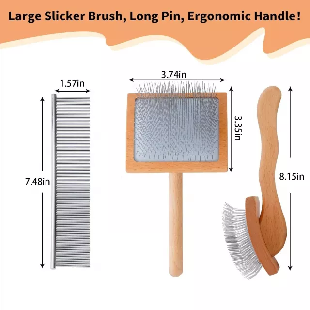 Tangles and mats can lead to discomfort, skin irritation, and unhealthy coats. With this slicker brush and comb set, you can keep your dog looking and feeling amazing every day. Add it to your cart now and turn grooming into a simple, relaxing bonding moment with your furry friend.