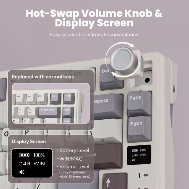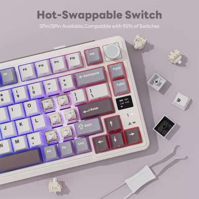 A large 8000mAh battery keeps you powered for extended sessions, while RGB lighting adds vibrant personality with 19 dynamic modes. The hot-swappable PCB lets you change switches without soldering, making it easy to build a setup that feels truly your own. Customize lighting, macros, and key functions through a web-based driver to match your workflow or gameplay style.