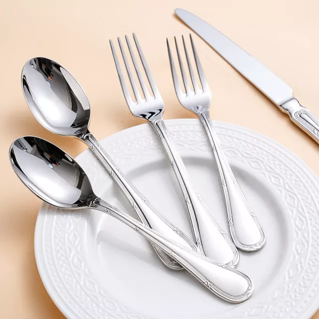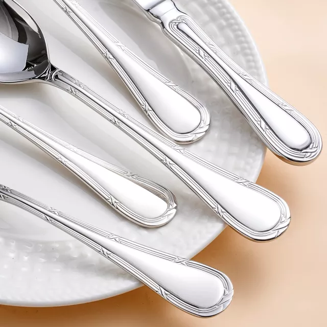 Crafted from premium 18/10 stainless steel, this flatware set is built to last. The mirror-polished finish adds a lustrous shine that resists tarnishing, rust, and fading over time. Its engraved detailing and solid pattern make it a sophisticated addition to any dining collection.