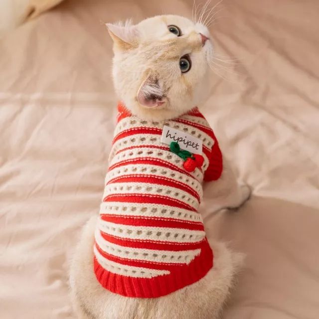 Give your pet the warmth, comfort, and cuteness they deserve with this charming Luxury Cherry Knit Dog Sweater. Designed with a playful cherry pattern and soft striped knit, this cozy turtleneck pullover keeps dogs and cats snug during chilly autumn and winter days. Its core spun yarn fabric offers a gentle, comfortable feel on the skin, making it perfect for everyday wear, outdoor walks, or cozy snuggle time at home. Whether your pet is small or medium-sized, this sweater adds instant charm and warmth while allowing easy movement.