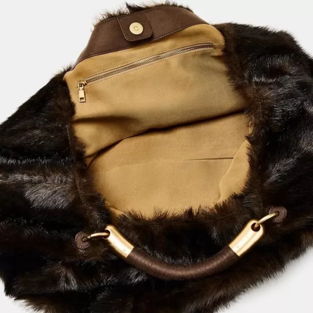 Designed with soft construction and a secure hasp closure, this oversized handbag measures approximately 17.7 in (L) × 6.7 in (W) × 9.8 in (H) and weighs just under 1.1 lb, offering lightweight ease without sacrificing space. The solid pattern and minimalist exterior give it a chic modern look, while its faux fur body makes it irresistibly plush and attention-grabbing.