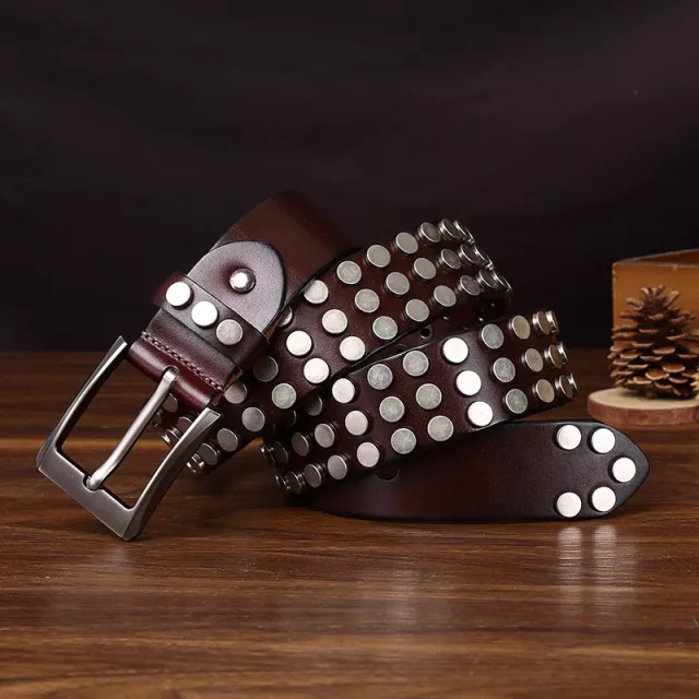 The edgy, strategically placed rivets are what set this belt apart. This isn’t just decorative; it’s a signature of punk and motorcycle culture. The cold, hard metal against the warm, aging leather creates a striking contrast that screams authenticity and attitude, making it a truly personalized, niche statement piece.