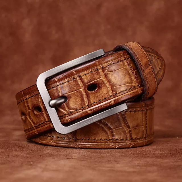 Upgrade your wardrobe with this premium crocodile embossed cowhide leather belt, crafted for the modern man who values both style and substance. Made from the top layer of genuine cowhide, this 1.5-inch (3.8cm) wide belt combines strength, elegance, and versatility. Its sophisticated crocodile texture and classic needle buckle create a bold statement that effortlessly complements jeans, chinos, or casual trousers.