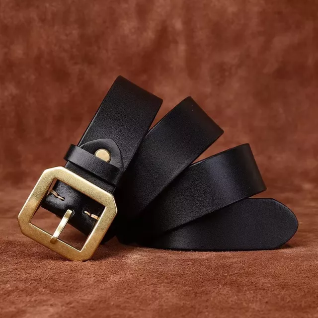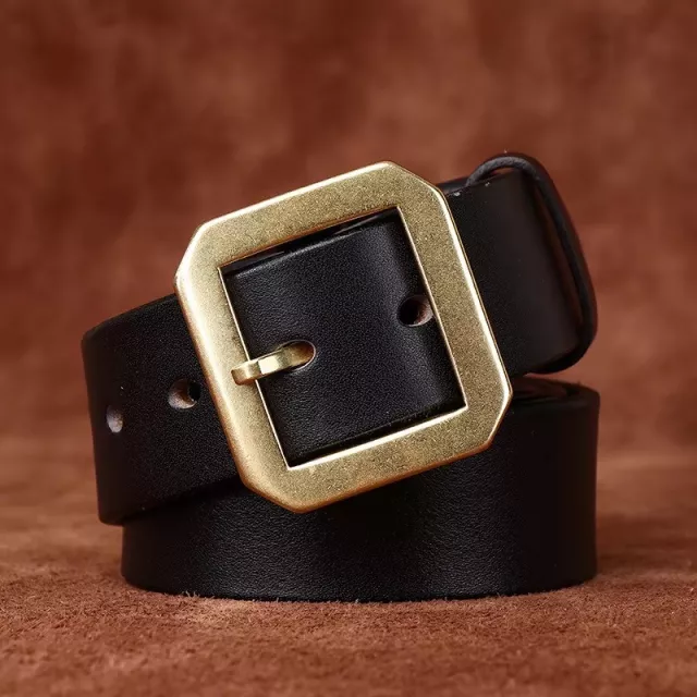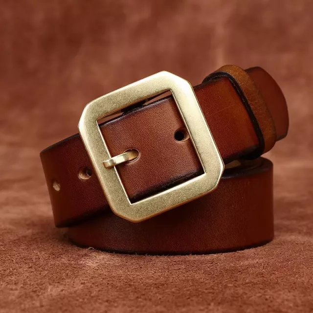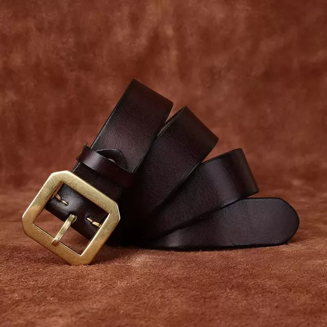 Men’s Genuine Cowhide Leather Belt with Copper Buckle – 1.5 Inch Casual Classic