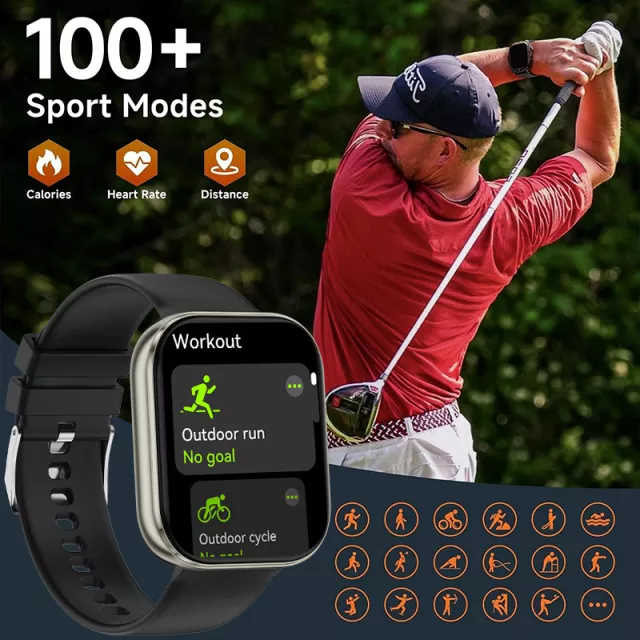 Enjoy smart technology made simple. This smartwatch includes a bright 320×380 HD touchscreen, all-day activity tracking, mood and sleep monitoring, heart rate and blood oxygen sensors, and multi-sport modes. A built-in LED flashlight, SOS function, interactive music control, and remote photo capture add even more convenience to your daily routine. Compatible with both Android and iOS, it easily keeps you connected with call reminders, message push notifications, and Bluetooth calling.