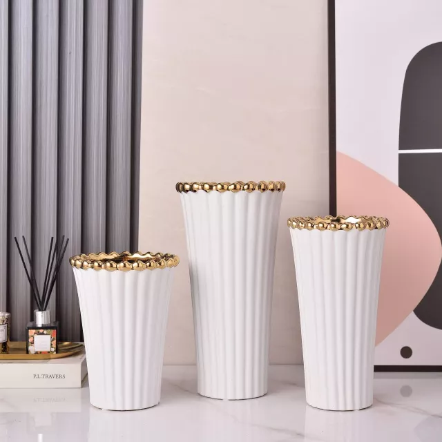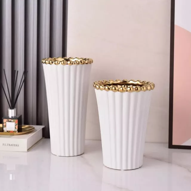 This vase is best used as a centerpiece for gatherings, home décor refreshes, or as a year-round accent piece that elevates your interior style. What makes it truly unique is its crown-like design paired with the luxurious mix of gold, black, and white tones—creating a sophisticated contrast that stands out instantly. Its smooth ceramic texture and glossy electroplated finish give your space a refined, artistic touch.