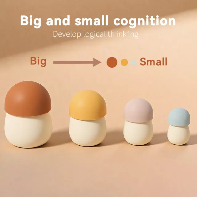 Crafted from high-quality silicone, the mushrooms are soft to the touch, easy to grip, and free from harmful substances—perfect for babies and toddlers who love to explore with their hands and mouths. Their smooth texture makes them suitable for teething, bath time play, and early sensory development. With a height range of approximately 1 to 4 inches, each size promotes different levels of hand coordination and finger precision.