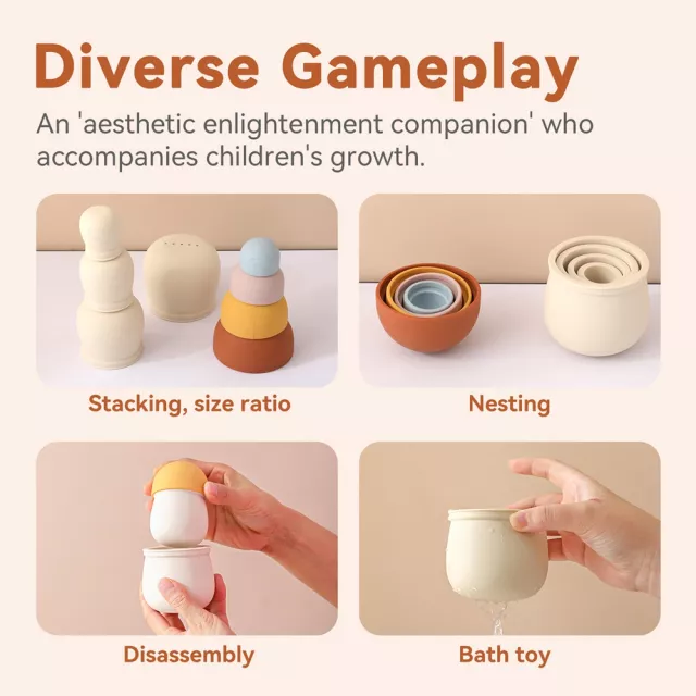 Introduce your little one to the magic of learning through play with this charming Montessori-inspired Silicone Nesting Mushroom Toy. Designed in a soft Nordic aesthetic, each mushroom features smooth curves and gentle colors that instantly elevate any room. Whether placed on a nursery shelf, playroom table, or living room corner, this set adds a refined, artistic touch to your home.