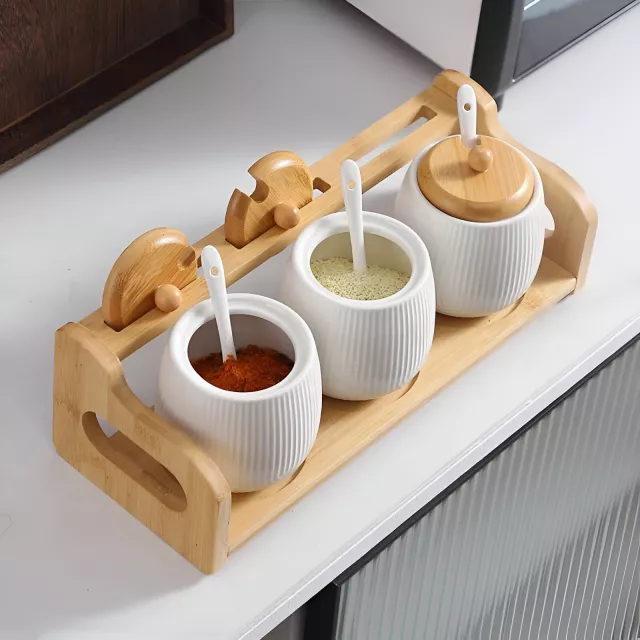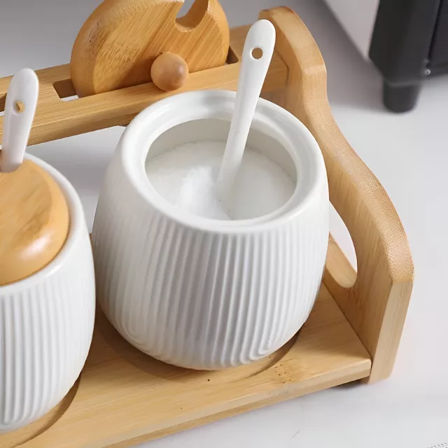 Bring a touch of Nordic elegance to your kitchen with this Ceramic Seasoning Jar Set. Designed for both beauty and practicality, this stylish spice storage box keeps your favorite seasonings – from salt and sugar to herbs and monosodium glutamate – neatly organized and easily accessible. Each ceramic jar sits securely in a smooth, minimalist tray that adds a refined charm to any countertop or dining table.