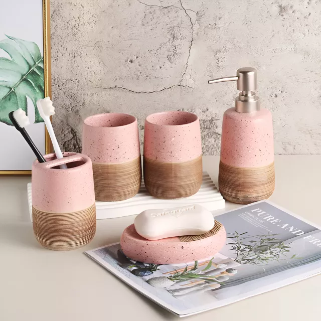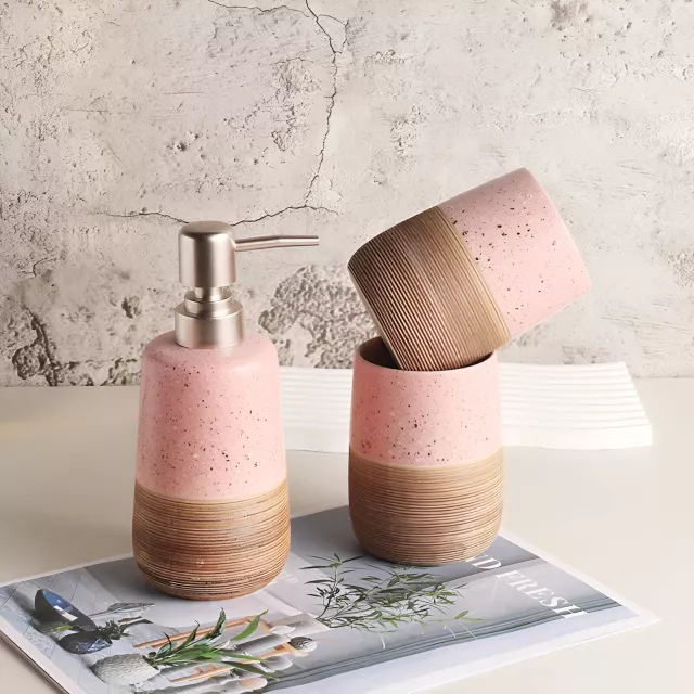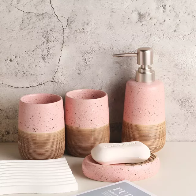 Transform your daily routine with this charming **pink ceramic bathroom accessory set**, designed to add warmth, style, and convenience to any bathroom space. Crafted from durable ceramic, each piece feels smooth to the touch and brings a soft, modern elegance to your countertop. Whether you’re refreshing your guest bathroom or giving your own space a stylish upgrade, this set offers everything you need to keep your essentials neatly organized.