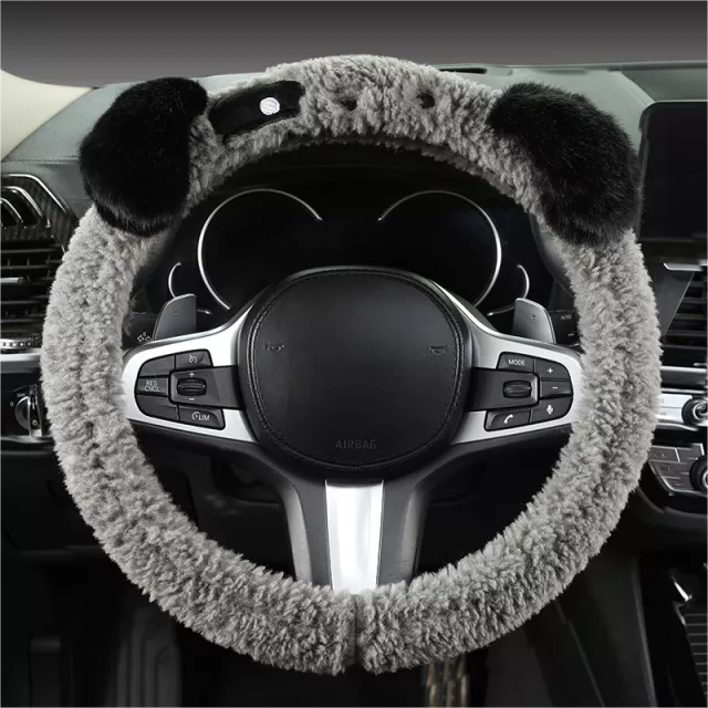 Plush Cartoon Steering Wheel Cover – Soft Non-Slip Winter Grip, 15” Universal