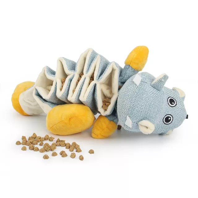 This slow eat toy is made from soft fleece and cloth materials that are gentle on your dog’s teeth and gums. At approximately 12 inches long, it’s ideal for puppies and small dogs to carry, chew, and cuddle. The built-in snack pockets help slow down eating, making it a great solution for dogs who tend to rush through treats or meals. Whether it’s playtime, training time, or independent chewing, this toy offers all-in-one fun.