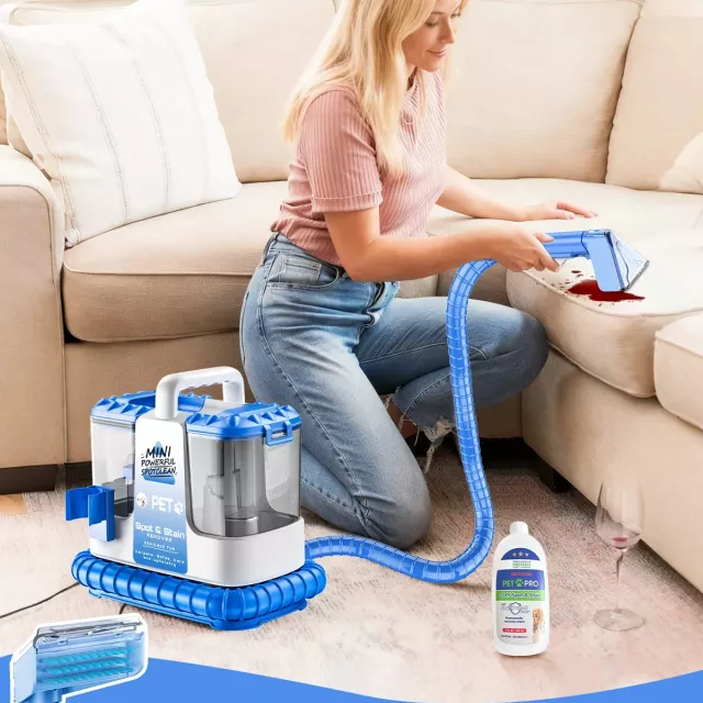 What makes this cleaner special is how much cleaning power it packs into such a small, easy-to-carry body. Measuring just 5.7 in x 10.5 in x 11 in and weighing only 5.3 lbs, it’s effortless to move, store and grab whenever a mess happens. The high-power 600W motor provides strong suction that lifts embedded dirt and liquids from fibers, helping you restore surfaces without harsh scrubbing. It’s best used for carpets, upholstery, vehicles, pet messes, stairs and everyday spot cleaning where speed and convenience matter.