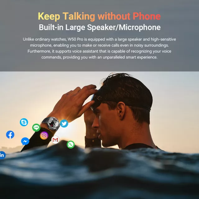 Built with a responsive TFT touchscreen and boosted by Bluetooth 5.2, this smartwatch ensures smooth performance and instant connectivity. The round display offers crystal-clear visuals with a 360×360 resolution, making notifications, stats, and calls easy to read at a glance. Its long-lasting 960mAh battery lets you enjoy extended use without constant charging. With a built-in voice assistant and support for multiple languages, it gives you convenient hands-free control wherever you go.