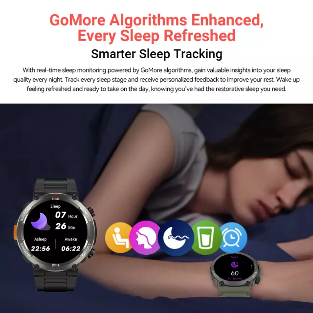 • Comprehensive health monitoring including heart rate, oxygen, sleep, and pressure