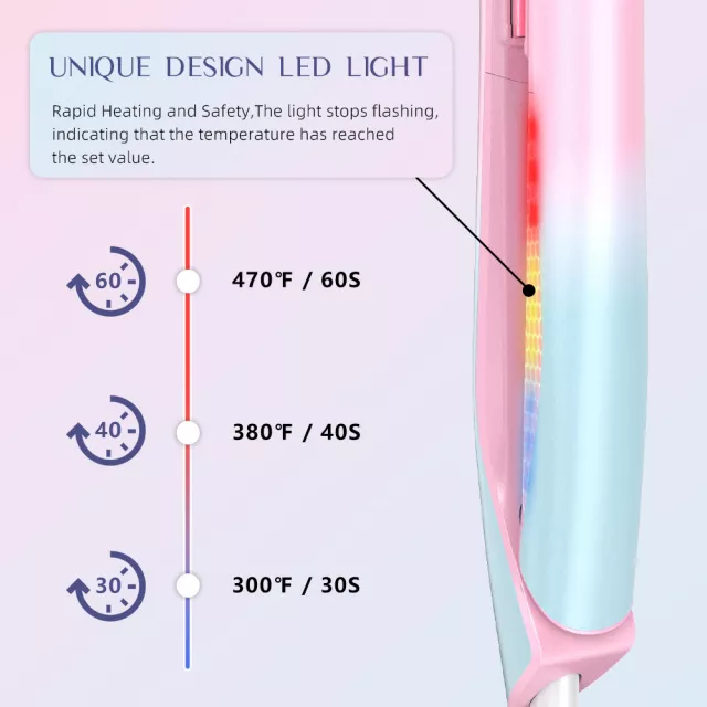 More than just a flat iron, this tool doubles as a curler thanks to its precision-crafted edges that allow for gentle flips and curls without creases. Its stunning color-shifting design—from pink to blue—adds a touch of elegance to your routine. With a 360° swivel cord and automatic 60-minute shutoff, it ensures maximum ease and safety while styling.