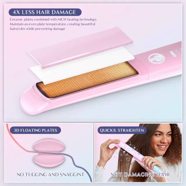 The advanced ceramic heating plates distribute heat evenly to reduce damage and boost shine, while 3D floating plates glide effortlessly to prevent snagging or pulling. Whether straightening or curling, you’ll enjoy smoother styling with less frizz and a beautiful finish that lasts.