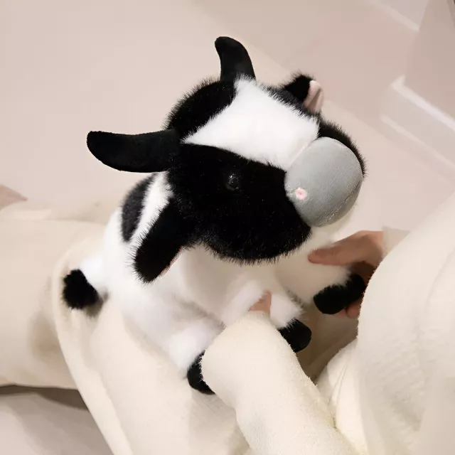 Realistic Plush Cow Stuffed Animal Soft Fluffy Cattle Toy Pillow