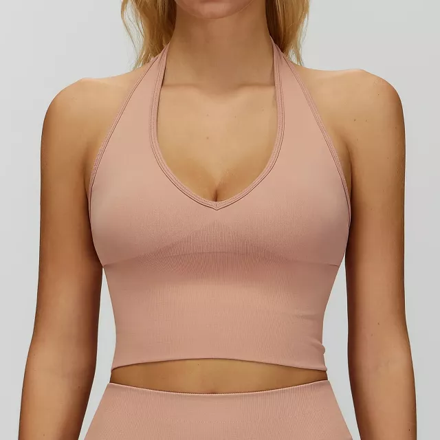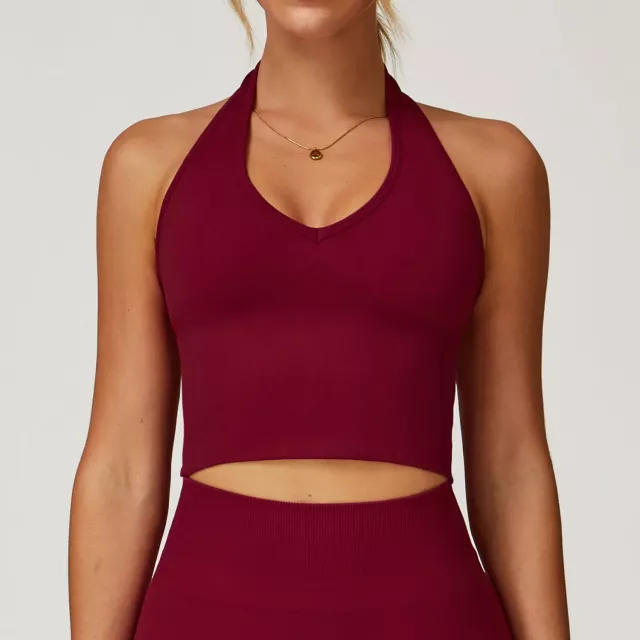 The breathable knit fabric feels lightweight and gentle on skin, while its quick-dry feature keeps sweat under control during even the toughest workouts. Its super-elastic construction molds to your shape, giving you confidence through deep stretches, jumps and bends. With a flattering deep-V neckline and smooth, seamless finish, it’s not only functional—it’s stylish enough to wear as a crop top on its own.