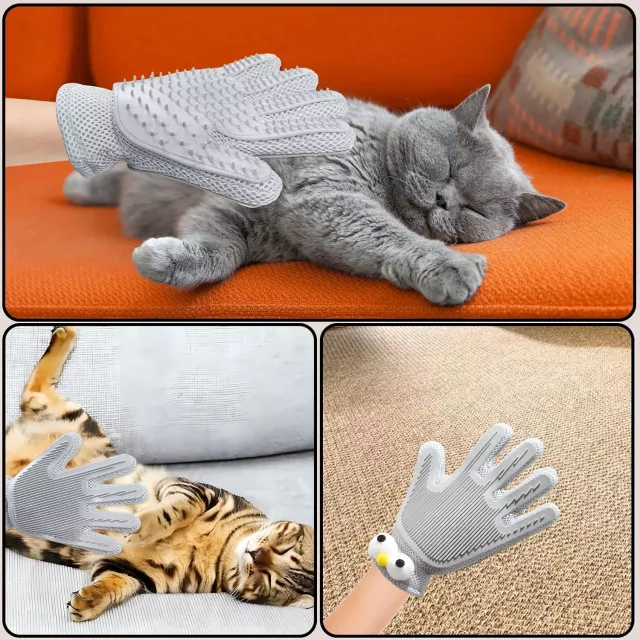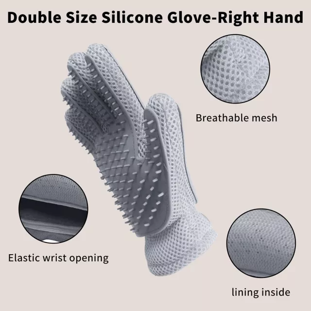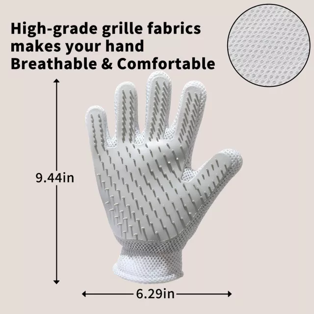Crafted from high-quality silicone, the glove is gentle on sensitive skin while effectively capturing loose hair. Each silicone tip mimics the feel of a soothing massage, helping your pet relax as you groom. Hair sticks directly to the glove, making cleanup simple and fast. This glove offers a complete grooming solution—brushing, bathing, cleaning, and massaging—all with one easy-to-use tool.