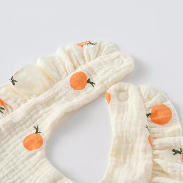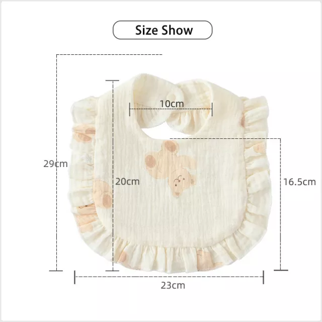 Made from natural cotton gauze, this bib feels light and airy, making it ideal for daily wear during feeding time, teething, outings, or simple at-home play. Its soft texture helps prevent irritation, while the charming ruffled edge adds a sweet touch to your baby’s outfit. Whether your little one is enjoying snacks or going through a drooly phase, this bib keeps clothes cleaner and babies happier.