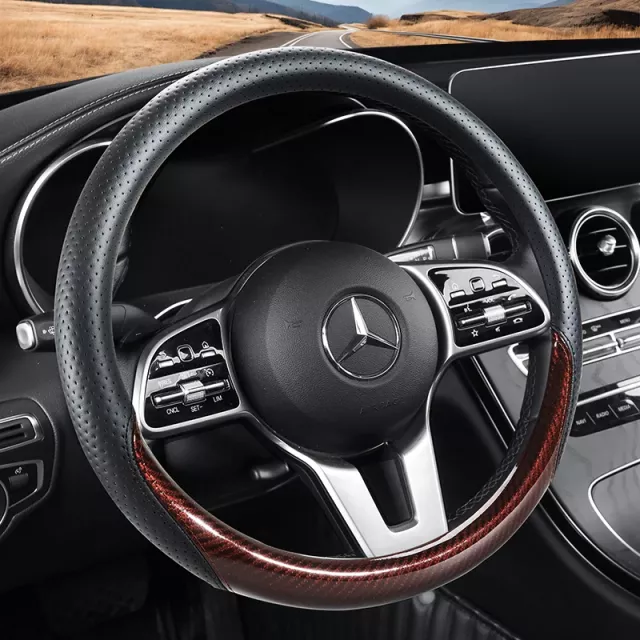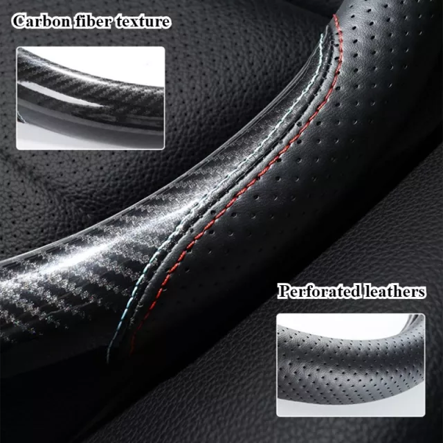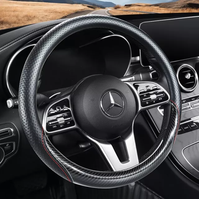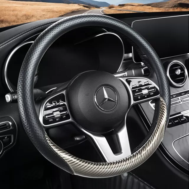 Upgrade your car interior with this sleek and sporty steering wheel cover designed for both performance and comfort. With its carbon fiber finish and perforated leather texture, it adds a bold, modern look to your wheel while improving grip and control. This cover is made to fit standard 15-inch steering wheels, giving most vehicles an instant refresh in style and feel without hassle.
