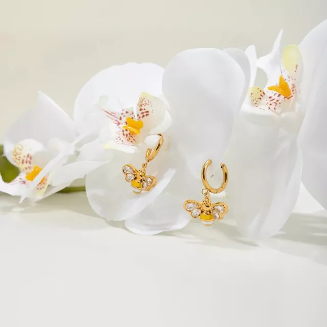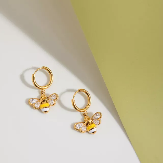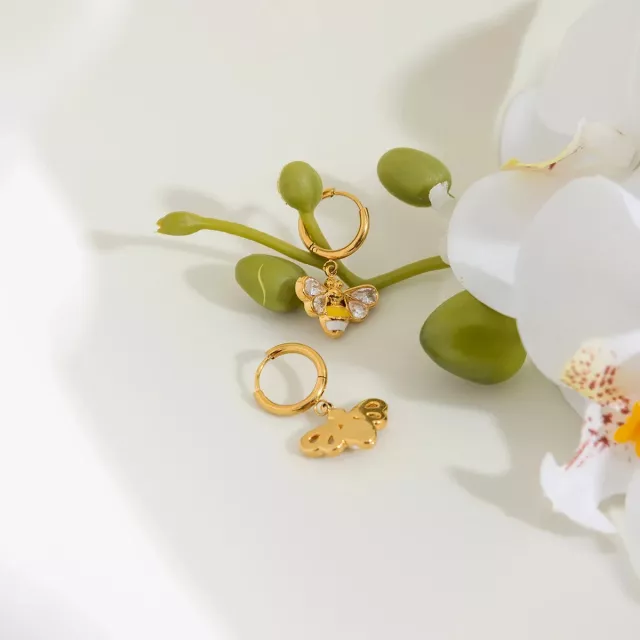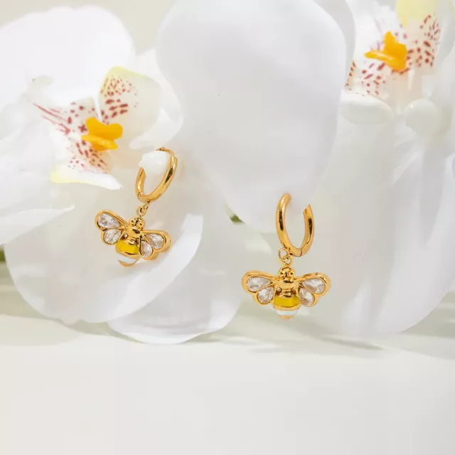 The whimsical bee design brings a joyful, uplifting energy to your outfit, while the white zircon stones catch the light beautifully for a subtle sparkle. Whether worn at work, on a date, or during a fun weekend outing, these earrings add a touch of sweetness and elegance without being overpowering. Their stainless-steel build makes them resistant to tarnish and perfect for long-term wear.