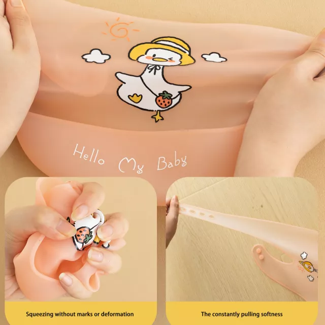 This bib combines softness, durability, and practicality into a single must-have accessory. The transparent waterproof layer keeps clothing perfectly protected, while the smooth silicone surface is easy on delicate skin. Its stylish cartoon design adds fun to every meal, and with two convenient sizes—approximately 12.2 x 8.6 inches and 11.2 x 7.8 inches—it adapts to your child’s growth. Because it’s lightweight and flexible, your baby can move freely while staying clean and comfortable.