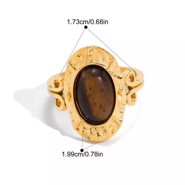 Add this Trendy Oval Tiger Eye Hammered Gold Ring to your collection and elevate your accessory game. Its unique design, luxurious finish, and versatile style make it a must-have piece for women who love chic, fashionable jewelry. Treat yourself or someone special today and enjoy a ring that is as timeless as it is trendy.