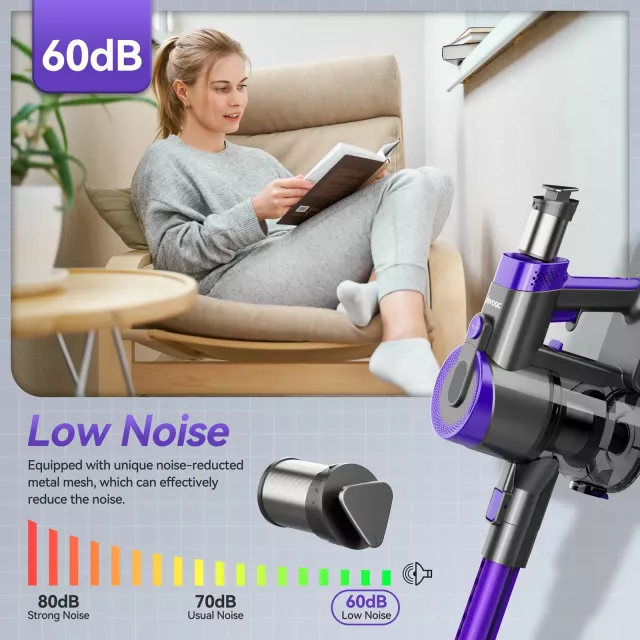 This vacuum is built for convenience. Weighing only about 6.6–13.2 lbs, it’s easy to lift, carry, and move from room to room without strain. The cordless design provides complete freedom, while the long-lasting battery delivers up to nearly an hour of cleaning time — perfect for everyday maintenance or deeper weekend cleans.