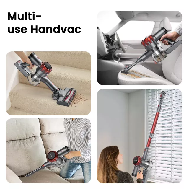 This high-performance vacuum uses a powerful 150AW motor to pull up dirt, crumbs, and embedded dust with ease. Three adjustable speed modes let you clean just the way you need—gentle for quick touch-ups, balanced for everyday messes, and strong for deep cleaning. The lightweight 9 lb frame means you can maneuver it comfortably around furniture, stairs, and above cabinets without strain. It’s best used for regular home cleaning, pet hair removal, and tight-spot detailing, making it a smart choice for busy households.