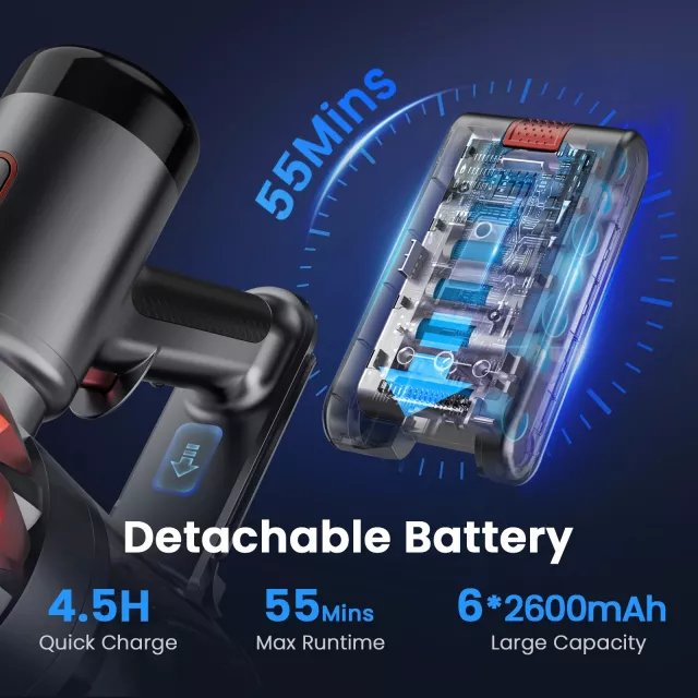 A long-lasting 2500mAh battery keeps you cleaning for up to 60 minutes on a single charge, ideal for whole-home cleanups. The advanced filtration system traps 99.99% of dust and allergens through a cyclonic cone and HEPA filter—perfect for families needing cleaner, fresher air. With versatile attachments, you can easily clean sofas, cars, and hard-to-reach areas. Every detail is designed to be simple, efficient, and reassuringly powerful.