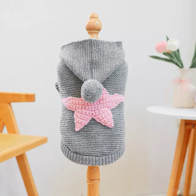 Give your furry friend the warmth and style they deserve with this snug knitted hooded pet sweatshirt. Designed for chilly autumn and winter days, this soft wool sweater keeps small dogs and cats comfortable, cozy, and irresistibly cute. The star-themed hood adds a charming touch, making your pet look adorable while staying protected from the cold.
