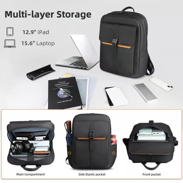 The backpack features a well-structured interior with multiple layers of storage. There is a dedicated padded compartment for a 15.6-inch laptop, along with separate slots for documents, notebooks, phone, and accessories. No more digging around for your charger or keys. Every item has its place, helping you stay organized and stress-free throughout your day.