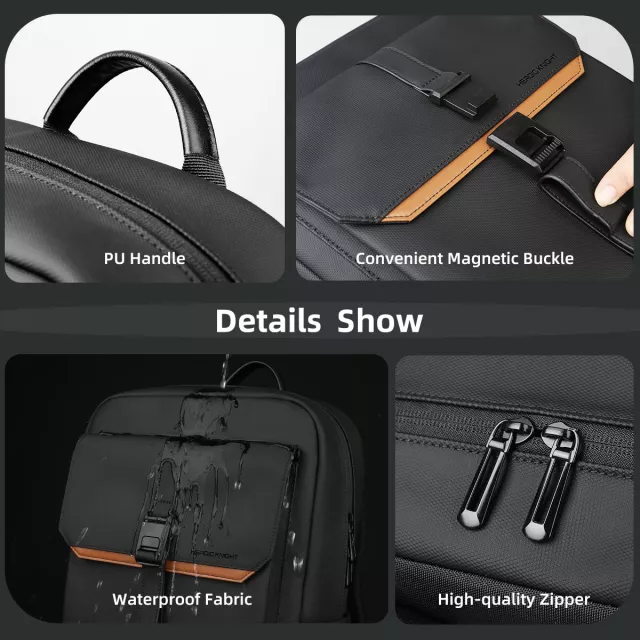 This modern backpack is made for men who move fast and need their gear to keep up. It combines a clean, minimal look with strong everyday performance. Whether you are heading to work, traveling for business, going to class, or spending a day in the city, this backpack keeps your essentials safe, organized, and easy to reach. Its sleek black design works with business, casual, or street style outfits, making it a flexible choice for any lifestyle.