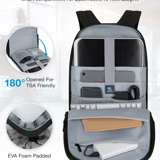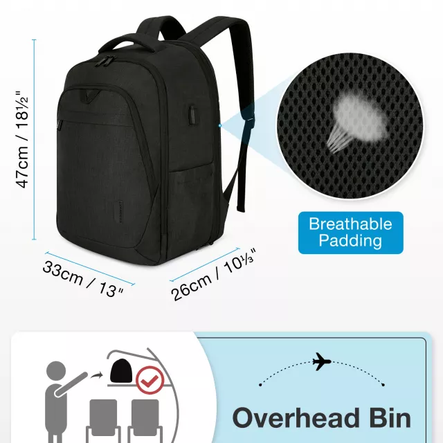 Long days feel easier with padded shoulder straps and a breathable back panel that provides all-day comfort. A built-in luggage strap lets you attach it to your suitcase handle during travel for hands-free mobility. The integrated USB charging port allows you to power your devices on the go when connected to a power bank inside.